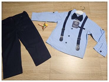 SvetloplavašKomplet plava koÅ”uljica sa tregerima i leptir maÅ”nom i teget pantalone, prelep, sveÄanš
