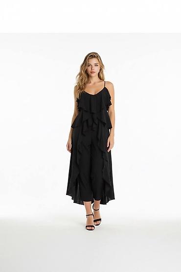 Damski komplet – korzet top + mini suknja od čipke - Dvodijelni set: uski korzet top sa spuštenim (drapiranim) dekolteom i tankim duplim naramenicama + mini suknja sa više volana od čipke. - Visok...