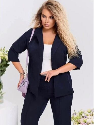 Ženski poslovni komplet 38vel – sako i suknja, tamno plave boje. - Sako klasičnog kroja sa reverima, jednoredno kopčanje na 4 dugmeta, duži rukavi. Dva dekorativna preklop džepa napred i podstava ...