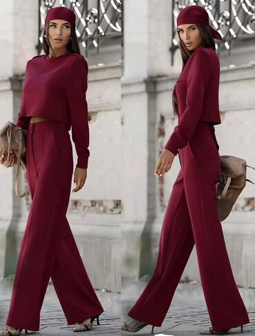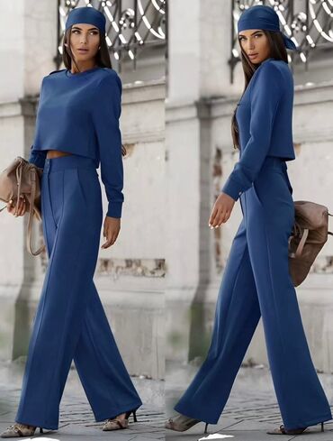 Ženski pleteni komplet – dukserica sa rajsferšlusom i široke pantalone - Dvončlani set od rebrastog pletiva: kratka dukserica sa kapuljačom i rajsferšlusom + pantalone ravnog, širokog kroja. - Vis...3 000 RSD