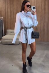 Ženska kratka haljina sa printom - Boja: puder roze baza - Print