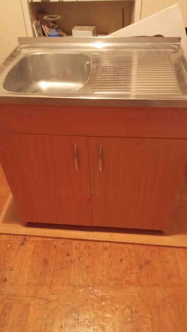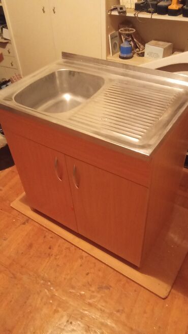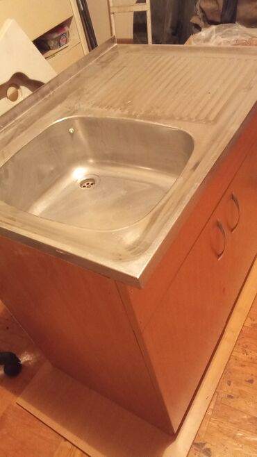 - Sudopera od nerđajućeg čelika, levo postavljen lavor (jedna kada) i desno ocetkivač/ravna rebrasta površina za ceđenje posuđa