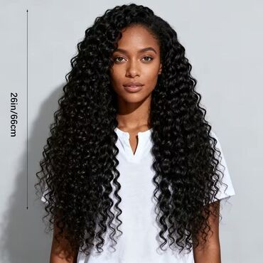 Dugačka kovrdžava perika sa čipkom (lace front) - Tekstura: duboke, definisane kovrdže sa prirodnim sjajem - Dužina: oko 26 inča / 66 cm (prikazano na fotografiji) - Stil: lace front sa prozirnom ...