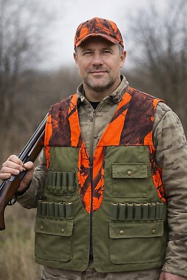 Lovački prsluk Olive Fluo je praktičan i pouzdan deo lovačke opreme, namenjen lovcima i ljubiteljima boravka u prirodi kojima su potrebni funkcionalnost, sigurnost i udobnost. Kombinacija maslinasto zelene (olive) boje i fluo narandžastih kamuflažnih detalja obezbeđuje povećanu vidljivost u lovu, uz zadržavanje prirodnog izgleda u šumskom okruženju.