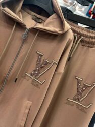 Dvoslojni ženski trenerka-komplet (duks + donji deo) sa kapuljačom i kengur džepom. Materijal deluje kao mekana, topla pamučna/futer tkanina sa elastičnim ranflama na rukavima i nogavicama. Gornji ...