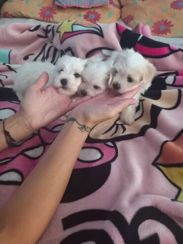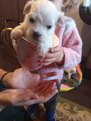 Mali beli štenci patuljastog tipa (izuzetno sitni) – pahuljasti, kratke njuškice, tamne okice. Idealni za život u stanu: malog rasta, mirnog temperamenta i brzi učenici osnovne higijene.