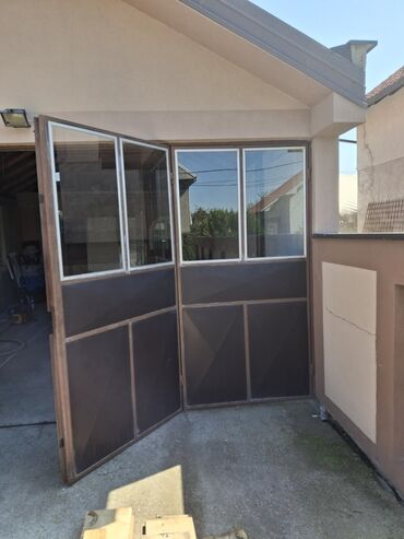 - Uključeno: kompletna kapija sa krilima, bočnim fiksnim delovima, nadsvetlom, šarkama i bravom (kao na fotografijama)