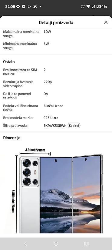 Smartfon sa velikim ekranom i naprednim sistemom kameraKOPIJA S26ULTRA - Ekran: veliki ravni displej sa centralno pozicioniranom rupicom za selfi kameru. - Kamere: zadnji modul sa više sočiva i b...
