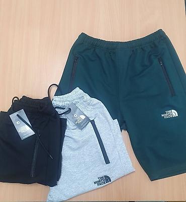Muške sportske bermude – Nike i The North Face - Model: kratke trenerke/bermude za svakodnevno nošenje i trening - Brendovi i logotipi: Nike Swoosh na levoj nogavici; The North Face logotip na des...