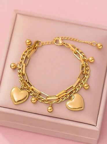 Zlatne narukvice – dva modela Model 1: - Dizajn: niz sjajnih “X” i cvetnih elemenata u reljefnom spoju - Dužina: 17,5 cm + produžetak 2,5 cm (podesivo) - Zatvaranje: karika sa sigurnosnom kukicom ...