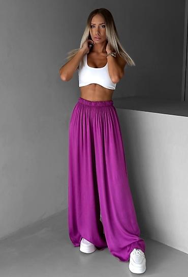 Ženske rebraste pantalone – lavanda - Model: ravne nogavice blago šire ka dnu - Visok, elastičan pojas za udobno pristajanje bez kopčanja - Materijal: meka, elastična rebrasta trikotaža koja prati...