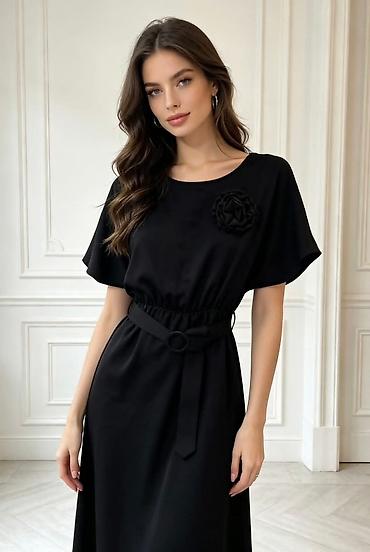 Elegantna duga crna haljina od satenskog materijala S, M, L - Kroj