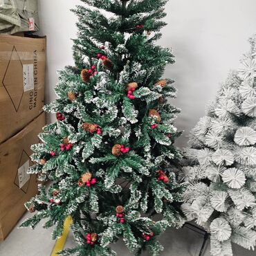 Njeni beli vrhovi na zelenim granama stvaraju efekat snežne zime, dok dodatni ukrasi poput šišarki i bobica donose autentičan praznični šarm u vaš dom. Zahvaljujući kvalitetnoj izradi od PVC materijala, jelka pruža realističan izgled, dugotrajnost i otpornost na habanje, što je čini idealnim izborom za višegodišnju upotrebu.
