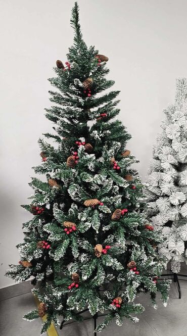 Njeni beli vrhovi na zelenim granama stvaraju efekat snežne zime, dok dodatni ukrasi poput šišarki i bobica donose autentičan praznični šarm u vaš dom. Zahvaljujući kvalitetnoj izradi od PVC materijala, jelka pruža realističan izgled, dugotrajnost i otpornost na habanje, što je čini idealnim izborom za višegodišnju upotrebu.