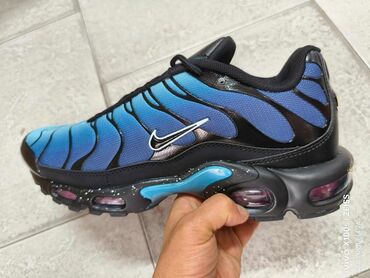 Muške patike sa vazdušnim đonom, dostupne u različitim bojama: sivo-crna sa neonsko zelenim detaljima, potpuno crna, i crna sa crvenim detaljima. Gornjište je kombinacija mrežastog materijala i sin...