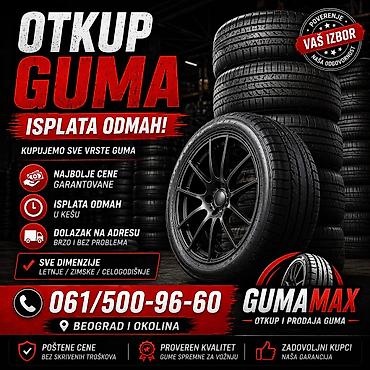 Bavimo se otkupom automobilskih guma u Beogradu i okolini, bez obzira na stanje – nove, polovne. Dolazimo na tvoju adresu, procena je besplatna, a isplatu vršimo odmah u kešu.