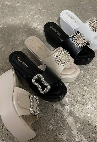 Ženske letnje papuče i sandale – više modela - Brojevi: 36–41 (naznačeno na fotografijama) - Modeli: 1) Ravne papuče sa kvadratnim vrhom i širokim gornjištem ukrašenim metalnim slovom V. Više bo...