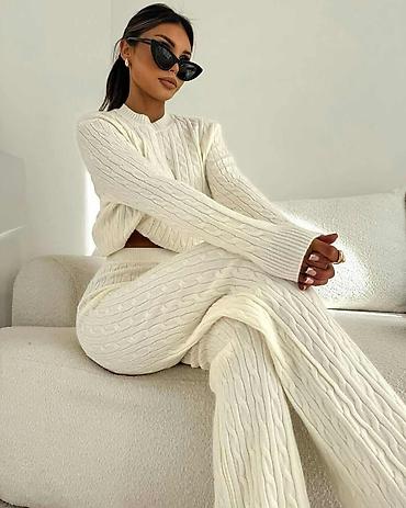 Dvoset ženske garderobe – uska suknja visokog struka i top sa spuštenim ramenima i dugim rukavima. - Kroj: figuru prati, elastičan rebrasti plet, suknja dužine ispod kolena sa blago A-linijom; top...