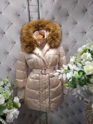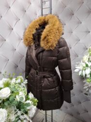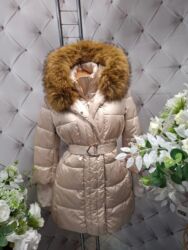 Ženska zimska jakna/kaput sa krznom - Boja: crna, visokog sjaja - Model: punjena, prošivena jakna duže dužine (iza kolena), strukirana kaišem sa kopčom - Krzno: bogat krzneni obrub duž kapuljače i...