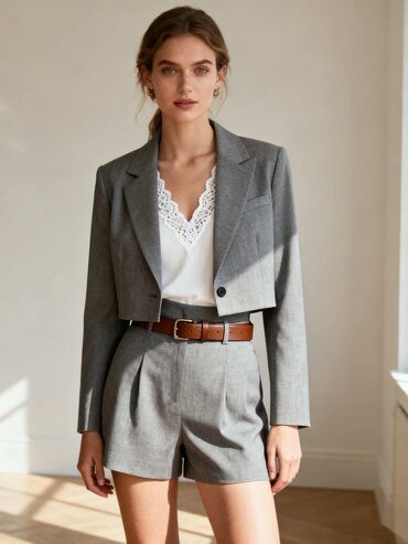 Ženski dvodelni komplet koji se sastoji od bluze sa širokim rukavima i širokih pantalona. Bluza je labavog kroja sa okruglim izrezom i metalik zlatnim ukrasima na kragni i rubovima rukava. Pantalon...