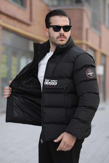 Muška zimska parka jakna, tamnozelena (army green). - Dužina do sredine butine, klasičan kroj. - Visoka kragna sa kopčom i skrivenim rajsferšlusom ispod preklopa na dugmad. - Četiri spoljašnja dže...
