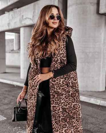 Ženska duga zimska prsluk-jakna sa kapuljačom. Velivine S M L XL - Model: punjeni, prošiveni prsluk bez rukava - Dužina: do ispod kolena, sa bočnim rasporima pri dnu radi lakšeg kretanja - Zatvaran...