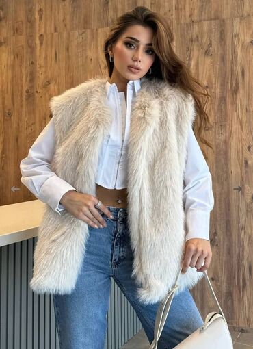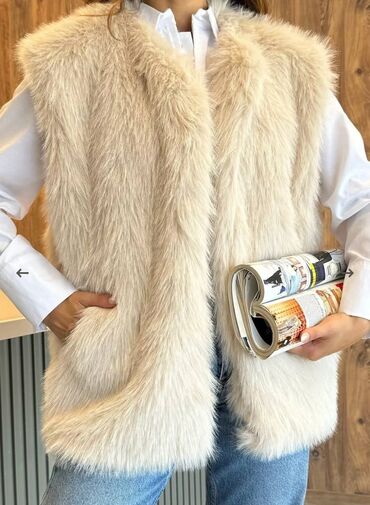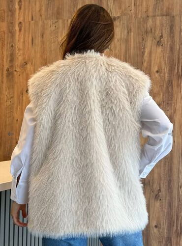 S /M M/L Prsluk od veštačkog krzna bez rukava, sa naglašenim kragnom/okovratnikom i pojasom za vezivanje u struku. Mekana, bogata tekstura krzna pruža efektnu siluetu i dodatnu toplinu. Unutrašnjos...