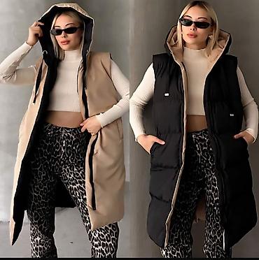 Ženska prošivena prsluk-jakna bez rukava, boja tamna čokolada. - Model: kratka jakna/prsluk bez rukava, sa širokim reverima i kopčanjem napred. - Pojas: u struku je kožni kaiš u istoj boji za vez...