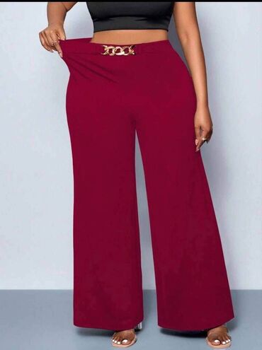 Ženske ravne pantalone sa širokom nogavicom - Model: ležerne, ravne pantalone visokog struka - Struk: elastična pasica sa učkurom/pertlom za dodatno podešavanje - Kroj: široke nogavice, opušten fi...