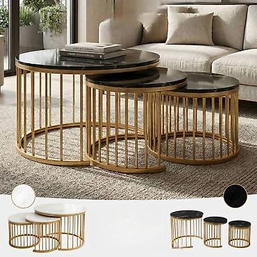 🏡 Unesite eleganciju i moderan stil u svoj dom uz ovaj prelepi set od tri stola koji se savršeno uklapaju u svaki dnevni boravak, apartman ili kancelariju. Minimalistički dizajn sa zlatnim metalnim postoljem i pločom sa imitacijom mermera daje prostoru luksuzan i sofisticiran izgled.