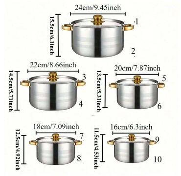 Set posuđa od nerđajućeg čelika – komplet lonaca i tiganja sa poklopcima - Višedelni komplet od visokokvalitetnog nerđajućeg čelika, visoko poliranog za elegantan izgled i lako čišćenje. - U kompl...