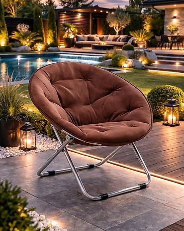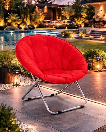 -Stolica je izrađena sa metalnom konstrukcijom i plastificiranim poliesterskim platnom sa fiber punjenjem, pa se može koristiti na terasi, u vrtu, ali i u kući.