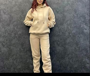 Duks + donji deo trenerke – komplet u bež/nu­de nijansi. - Materijal: meka, elastična pletenina sa glatkom površinom, prijatna za kožu. - Gornji deo: hoodie sa kapuljačom i učkurima, kraći rukavi...