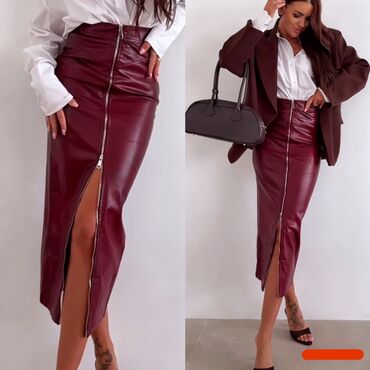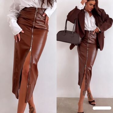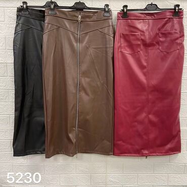 Suknje, eko koza Cena 2800 Velicine:Uni Odgovara za S M L XL Model dostupan u Braon Zelenoj Crno j i Bez Boji V/023