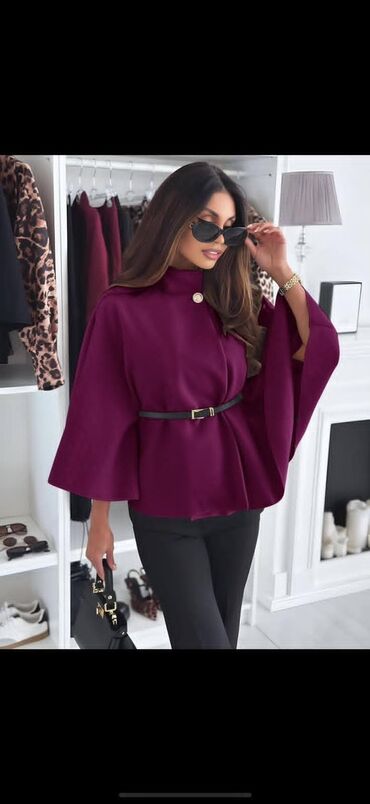 Lot odeće – ženska garderoba, veličina M - Dve kombinacije kompleta: 1) Gornji deo: satenski/blago sjajan košulja-top u boji purpura sa kragnom i dugim rukavima. Donji deo: lagane pantalone širo...