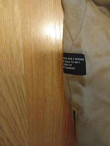 - Donji deo trenerke: bež/peščana boja, elastičan pojas sa učkurima za podešavanje, bočni džepovi. Na potkolenici i kod članka nalazi se funkcionalan crni rajsferšlus, a sa strane mala etiketa sa tekstom. Rebraste ranfle na nogavicama za bolje prijanjanje.