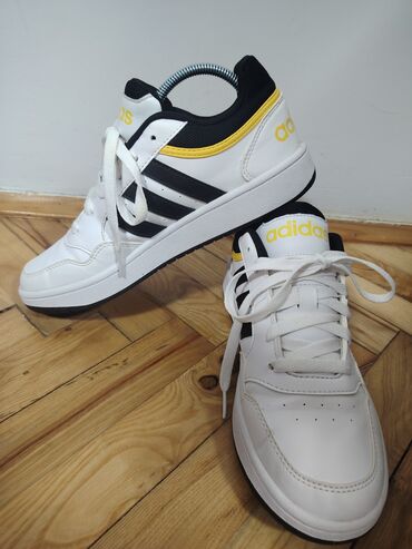 Adidas patike – nizak model, bele sa crnim detaljima i žutim