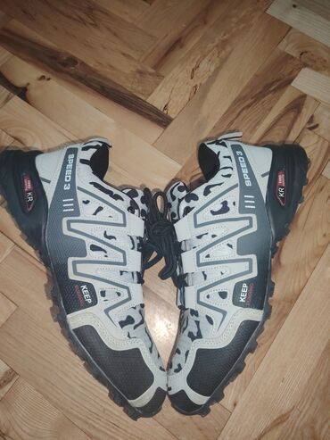 Robustan i sportski par patika sa izraženim gaznim slojem i stabilnim bočnim ojačanjima, pogodan za različite terene.