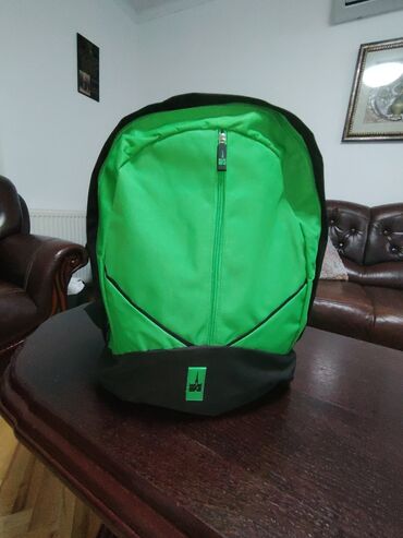 Crveni ranac “UM BUM” sa štampom na prednjoj strani. Specifikacije: - Dimenzije: 40 × 25 × 15 cm (naznačeno na fotografiji) - Materijal: lagana tkanina, bele ivice - Glavni odeljak sa rajsferšluso...