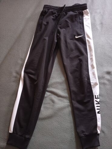 - Donji deo trenerke: crne trenerke sa belim bočnim trakama; elastičan pojas sa učkurom za podešavanje; elastične ranfle na nogavicama; bočni džepovi; mali beli “swoosh” napred i natpis „NIKE“ na donjem delu nogavice.