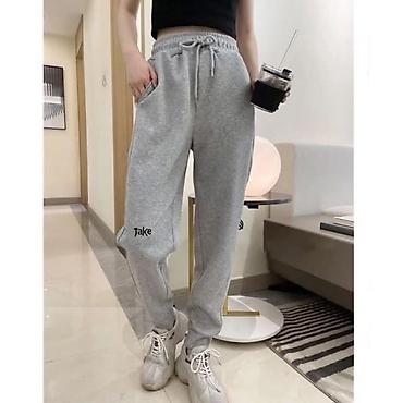 Ženske trenerke – ravnog kroja sa džepovima S M L XL 2XL 3XL - Kroj: ravne nogavice, srednje visok struk - Pojas: elastičan sa podešavajućom učkur vezicom u kontrastnoj boji - Džepovi: dva bočna u...