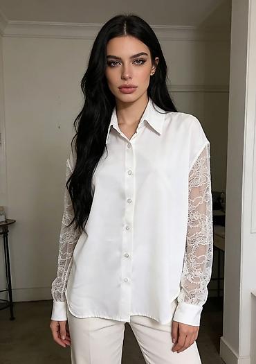 Bela, kosulja tunika, svecanija presijava se, rukavi mogu da se
