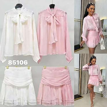 • Komplet: Suknja i Bluza.Romantična midi suknja od tila sa perlama -