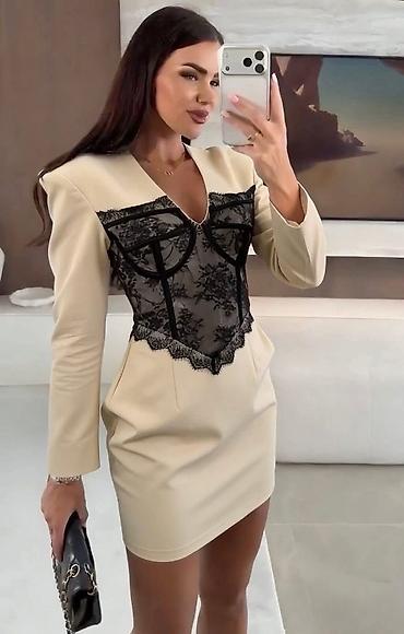 Korset haljina sa korpicama na grudima i silikonskom trakom sa unutrasnje strane. Duzina i sirina na slikama.+381 63 10349xx