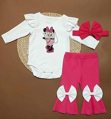 Dečiji komplet za devojčice – Cichlid, veličina 18–24 meseca. Sastav kompleta: - Majica kratkih rukava u beloj boji sa nežnim volanima na rubu. Na prednjoj strani je štampa sa motivom devojčice i ...