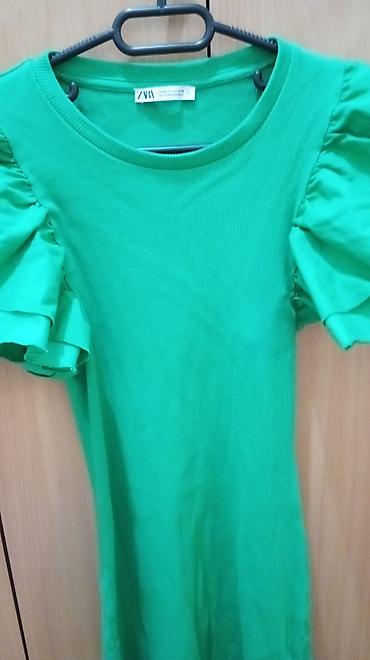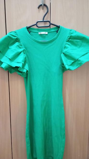 ZARA crna haljina – model sa asimetričnim rukavima - Brend: ZARA - Veličina: S (EU S, USA S, MEX 26) - Boja: crna - Kroj: midi dužina sa asimetričnim porubom i prorezom sa strane; zanimljiv dizajn...