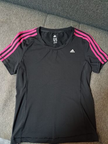 Ženske majice kratkih rukava – više modela - Crna majica sa printom “adidas” i ružama u roza tonovima. Okrugli izrez, klasičan kroj. Oznaka veličine na etiketi nije vidljiva, odgovara za M/L. Cena...