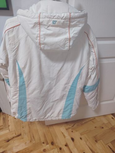 Zimska/ski jakna sa kapuljačom - Boja: bela sa sivim panelima i crvenim detaljima/pauspicama - Materijal: vodoodbojna spoljašnjost sa toplotnom izolacijom; mekana crna postava u kapuljači - Kapulj...