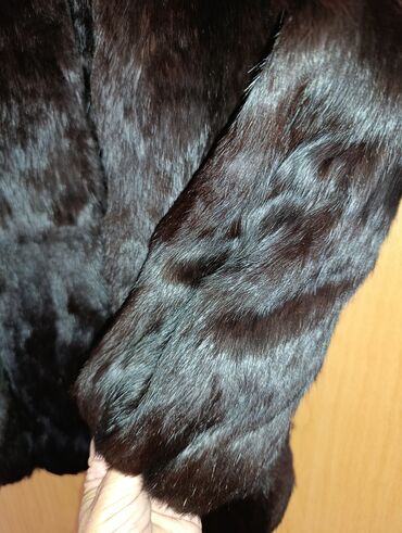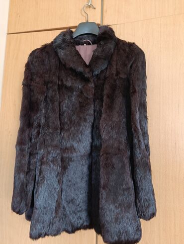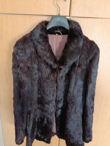 Ženska bunda od tamno braon prirodnog krzna, klasičnog kroja do ispod kukova. Mekana, sjajna dlaka sa diskretnim šarama, ravni rukavi i blago strukiran izgled. Preklop sa prednjim kopčanjem (skriveni kopči/dugmići – nije vidljivo spolja), klasična kragna koja se može nositi spušteno ili blago podignuto. Unutrašnjost je obložena glatkom postavom u ton‑na‑ton braon boji, prijatnom na koži. Elegantna i topla, pogodna za večernje izlaske, svečanosti i hladne zimske dane. Neutralna tamna nijansa lako se kombinuje sa haljinama, pantalonama i čizmama. Dovoljno prostrana da stane preko sakoa ili debljeg džempera.