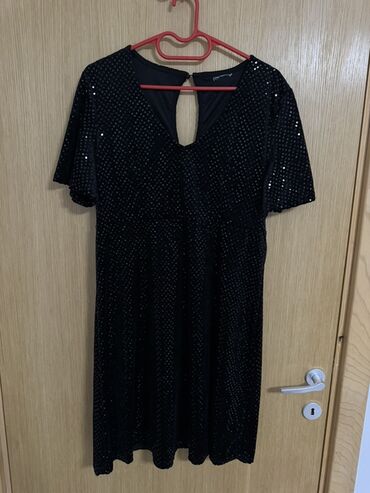 Elegantna crna haljina sa sjajnim tačkicama (štras/sekvin efekat). -
